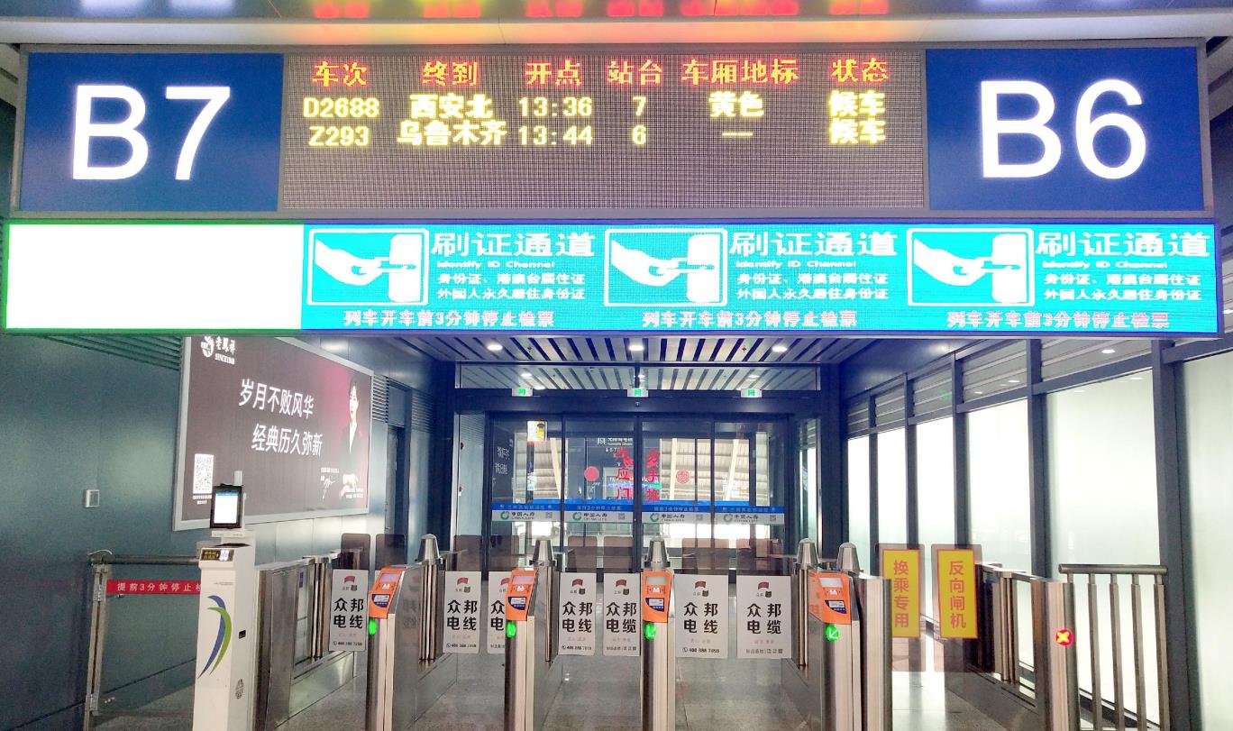 蘭州火車站候車室進(jìn)站閘口感應(yīng)門廣告