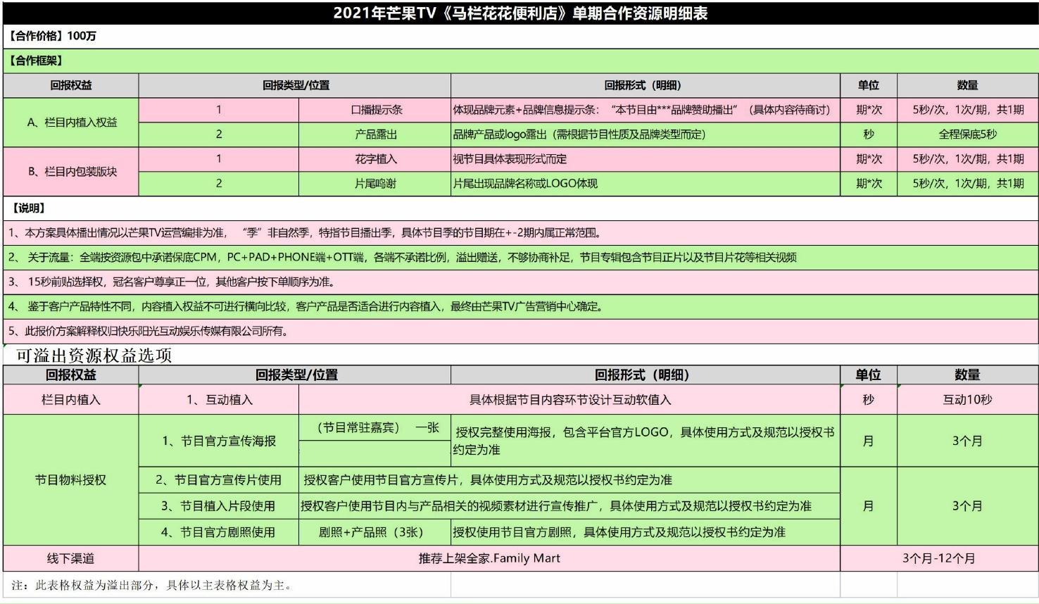 2021年芒果TV《馬欄花花便利店》行業指定資源明細表