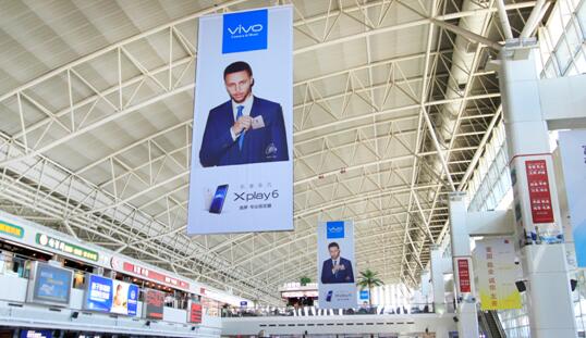 出發大廳值機柜臺上方懸掛吊旗廣告