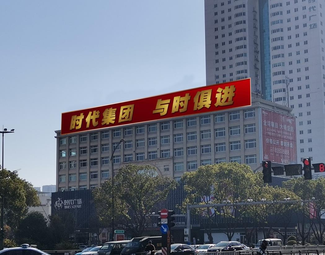 該地標大屏位于溫州錦繡路與車站大道交匯處---溫州時代廣場購物中心樓頂,時代廣場購物中心營業(yè)面積達2萬多平方米,是溫州屈指可數(shù)的現(xiàn)代化綜合百貨商場。