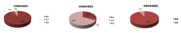 3、北京站,普速車數(shù)量占比93%,勱車數(shù)量占比7%,北京站發(fā)送列車主要以普速列車為主,包含京沈線、部分京哈線、京秦線