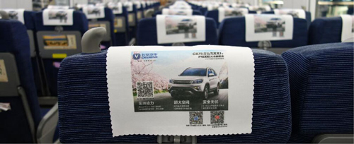 位于所有高鐵車廂內行李架下方,對稱發布,氣勢磅礴,視覺沖擊力強,無論坐、立、行,都能有絕佳的視覺效果,利于品牌整體性展示。