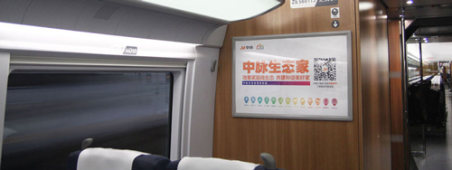 海報:位于所有高鐵車廂內進門處等顯要位置,覆蓋全部高鐵旅客。