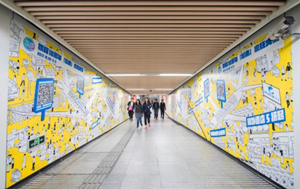 地鐵墻貼廣告一般分布于地鐵站的通道處兩側或一側,由大面積的海報形式組成。畫面一般為連貫性的廣告宣傳畫面或者有故事情節(jié)的組合畫面。