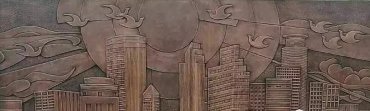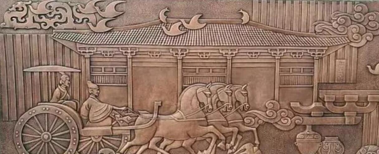 雕塑底座為浮雕,整體設計思路是前“未來”、后“現(xiàn)在”、左“人”、右“文”。即:正前方以高鐵、公路、科技、建設等畫面表現(xiàn)高碑店的未來;后方以建筑、陽光、飛鳥、祥云等表現(xiàn)現(xiàn)在和諧幸福的高碑店;